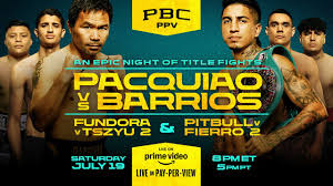 On Saturday July 19th, The living legend Manny Pacquiao will face off against Mario Barrios at the MGM Grand Garden Arena in Las Vegas. Barrios will be defending his WBC welterweight title. This fight will headline a stacked PBC card of title fights and will stream live via Prime Video starting at 8PM ET/ 5PM PT.